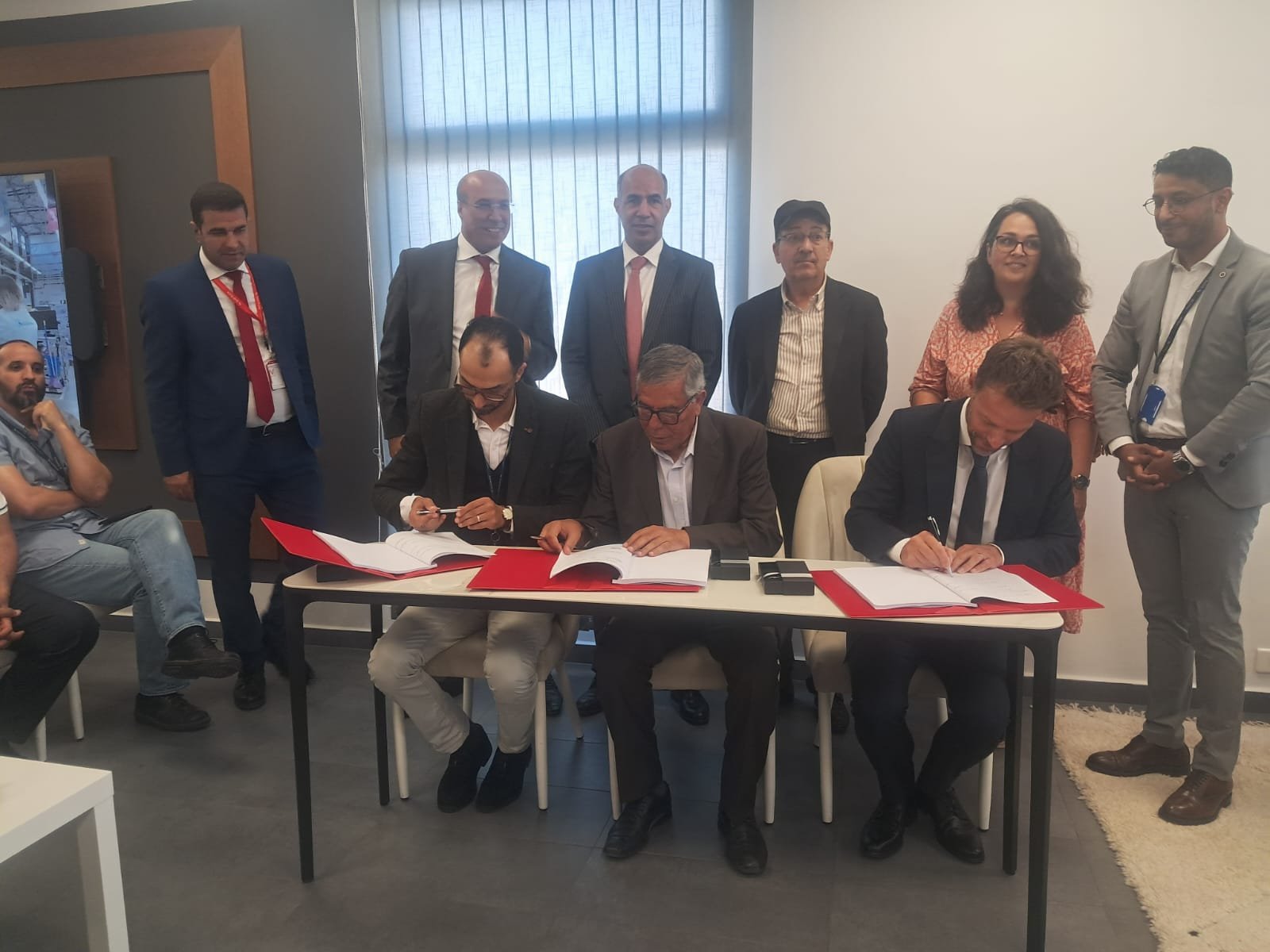 أشرف السيد هشام صابري، كاتب الدولة المكلَّف بالشغل لدى وزارة الإدماج الاقتصادي والمقاولة الصغرى والتشغيل والكفاءات، على مراسم توقيع اتفاقية الشغل الجماعية المبرمة بين الشركة العالمية «Safran nacelles morroco» والمركزية النقابية الكونفدرالية الديمقراطية للشغل CDT، وذلك بمقر الشركة بالحي الصناعي بمنطقة النواصر بالدار البيضاء.